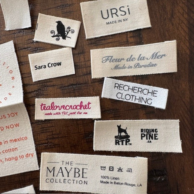 This listing is for our 100% COTTON CLOTHING LABELS. Perfect for when you need a soft, simple, organic look! These labels are professionally printed - they are not made with any type of plastic iron on material so you can use these however you wish without fear of ironing over the label. Very soft and perfect for general clothing, baby/children's clothing, lingerie, neck labels, hem tags, logo labels and home decor. As with any printed fabric, use caution with excessive whiteners or bleach as that can fade the ink over time. Due to the natural qualities of the cotton - the texture and weave can vary from order to order. One complete order will be the same type of cotton, but please realize that subsequent orders can be slightly different depending on what cotton my supplier has given us at the time.